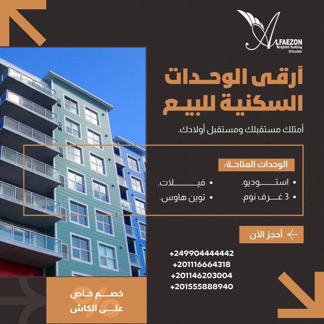 متخصصون في البيع والشراء والتأجير مفروش وفاضي في كل من السودان ومصر ،والأراضي السكنية والمزارع.